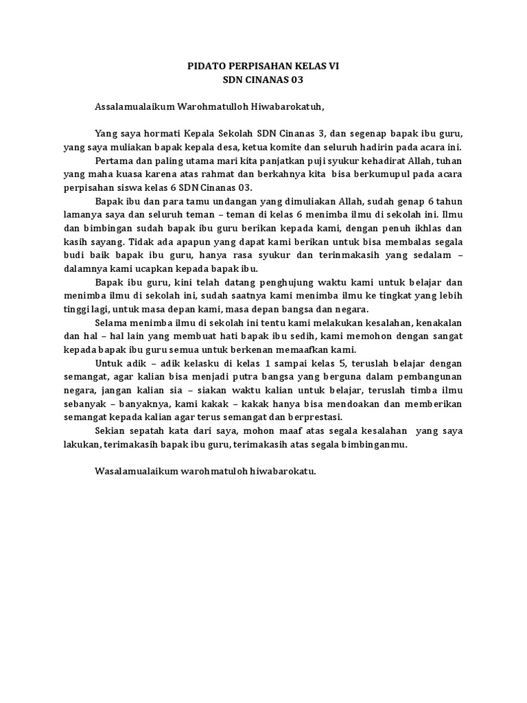 Pidato Perpisahan Kelas Vi Sdn Cinanas 03 Pdf