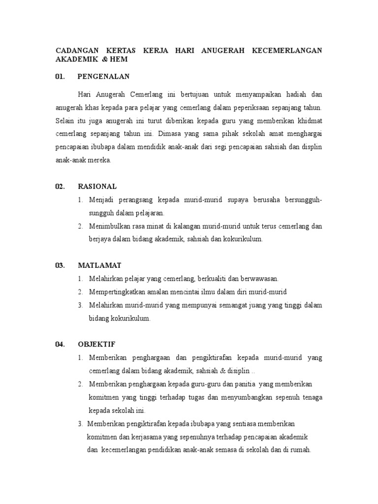 Contoh Kertas Kerja Hari Anugerah Cemerlang Pdf