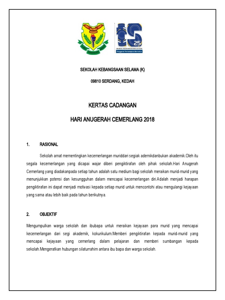 Contoh Kertas Kerja Hari Anugerah Cemerlang